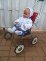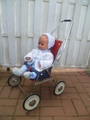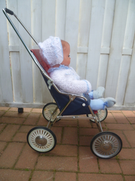 Durch seine eher niedrige Höhe ist der Puppenwagen auch sehr schön als Dekoration kindlicher Schaufensterpuppen geeignet :)