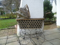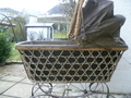 Dieser verchromte Ablagekorb / Einkaufskorb für fast alle nostalgischen Puppenwagen mit Scherengestell ( zusammenklappbarem Untergestell ) geeignet.