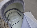 Die rückseitigen Laschen werden einfach über die Achsen des Puppenwagens geschoben. Eine weitere Befestigung ist nicht nötig !